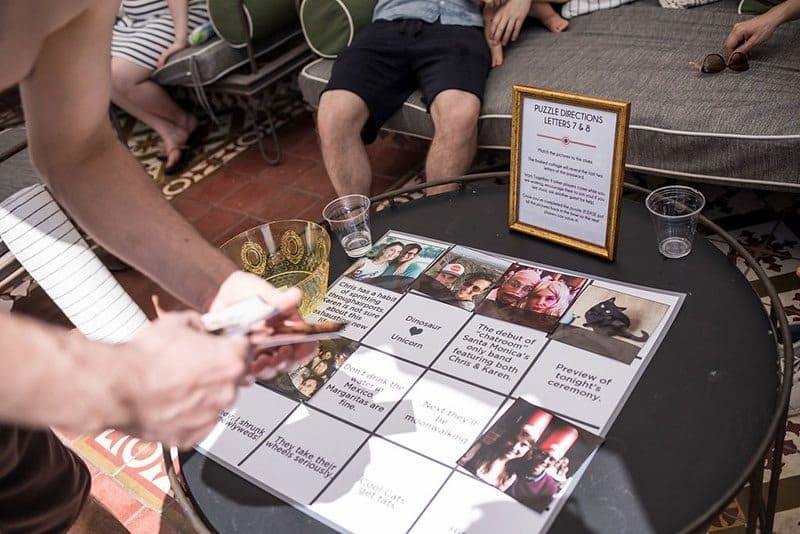 Les mots fléchés sont une activité de mariage originale calme et apaisante pour les invités. Organisez des animations entre le repas de mariage ou pendant le repas de mariage pour maintenir une ambiance festive tout au long de la journée.