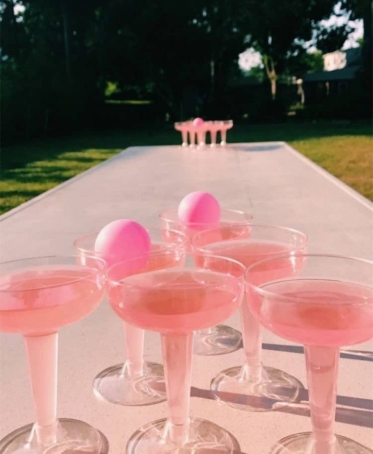 Transformez le jeu de bière pong en une version plus sophistiquée avec du champagne. Les invités lancent des balles dans des verres de champagne, et ceux qui réussissent à les faire atterrir dans les verres peuvent déguster le champagne.
