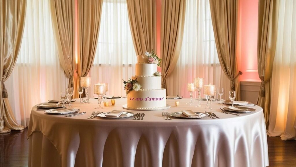 Les 12 ans de mariage sont souvent appelés les noces de soie. Ce terme symbolise la douceur et la résistance de votre union. La soie est un matériau luxueux, représentant la beauté et la durabilité de votre relation après plus d’une décennie.