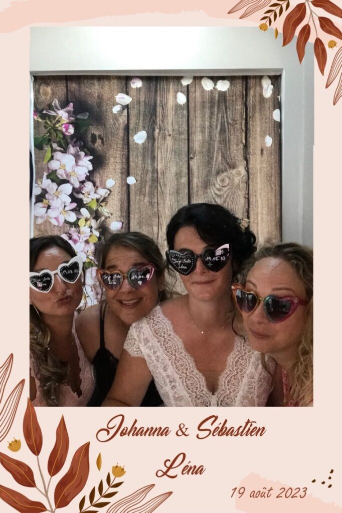 Mais ce n’est pas tout ! Pour ajouter une touche d’amusement et d’originalité à leur cérémonie laïque, Johanna et Sébastien ont fait appel à ShootnBox pour s’occuper de l’animation. Ils ont opté pour la location d’un photobooth personnalisé, créé à leur image, pour permettre à leurs invités de capturer des souvenirs uniques et hilarants de la journée. C’était un succès total, et les photos prises ce jour-là sont devenues des trésors précieux pour le couple, rappelant à jamais les moments de joie et de complicité partagés avec leurs proches.