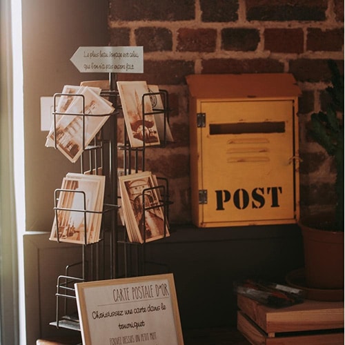 Disposez un poste de cartes postales vintage ou personnalisĂ©es oĂč les invitĂ©s peuvent Ă©crire leurs vĆux sur des cartes postales. Ces cartes peuvent ensuite ĂȘtre postĂ©es dans une boĂźte aux lettres dĂ©corative que vous garderez comme souvenir.